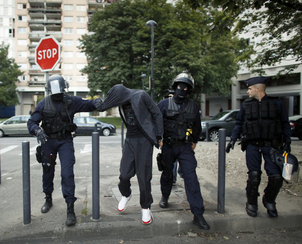 아랍계 이민자의 소요 사태가 발생한 프랑스 그르노블에서 지난 8월10일 경찰이 한 청년을 연행하고 있다. REUTERS/ ROBERT PRATTA