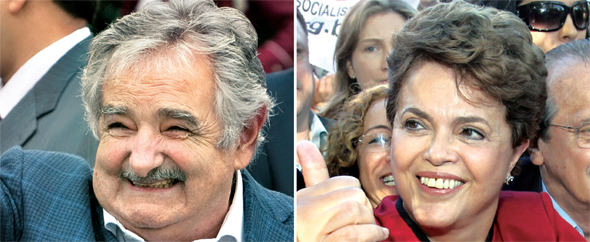 중남미에서 게릴라 출신 대통령들이 잇따라 등장하고 있다. 군중의 환호에 답하는 호세 무히카 우루과이 대통령(왼쪽)과 지우마 호세프 브라질 대통령 당선자.연합 AP