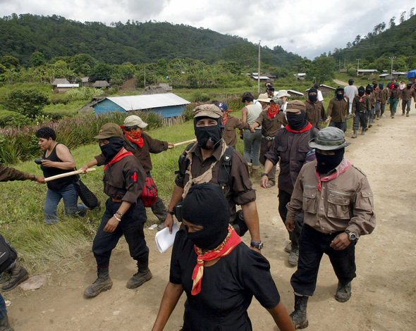 멕시코의 무장혁명단체 EZLN은 투쟁에서 별다른 성과를 거두지 못한 채 그 존재가 잊혀지고 있다. 2005년 9월, EZLN 게릴라들이 멕시코 치아파스주에서 복면을 한 채 행진 하고 있다.REUTERS/ HENRY ROMERO