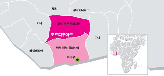 코트디부아르는 한동안 서아프리카에서 ‘평화의 섬’ ‘경제 기적’ ‘불어권의 맏형’으로 불렸다. 1842년 프랑스에 점령당한 뒤 1960년에 독립한 이 나라는 독립 뒤 20여 년간은 카카오와 커피 등 열대작물을 수출하면서 식민지에서 벗어난 대표적 모범국가로 성장했다.