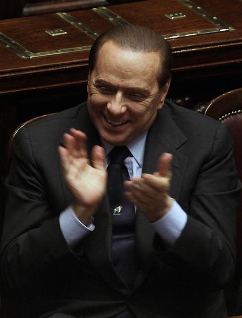 실비오 베를루스코니 이탈리아 총리는 온갖 추문에도 총리직에서 쫓겨나지 않고 있다. 그가 12월14일 하원에서 열린 신임투표에서 승리한 뒤 박수를 치며 기뻐하고 있다.연합 AP