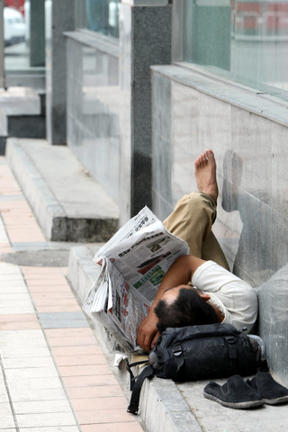 중국 농민공(도시에서 일하는 농민 출신 노동자)이 베이징 시내에 있는 집을 사려면 당나라 때부터 한 푼도 안 쓰고 모아야 겨우 집 한 채 마련할 수 있다는 통계도 있다. 베이징 시내에서 한 노숙자가 신문을 보고 있다. 한겨레 자료