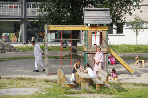 8월1일 오후 노르웨이 오슬로 프루세트 주택가 앞 놀이터에서 무슬림 가족이 여가 시간을 보내고 있다. 한겨레21 이승환 통신원