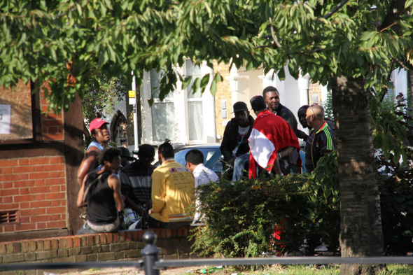 지난 8월9일 저녁 7시께, 폭동이 시작된 런던 북부 토트넘 지역에서 청년 10여 명이 모여 이야기를 하고 있다. 이승환 통신원