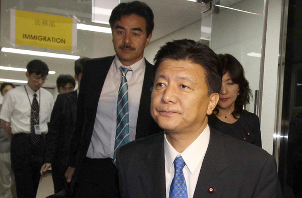 지난 8월1일 울릉도로 가겠다며 서울 김포공항으로 들어온 일본 자민당 소속 의원들이 9시간 동안 출국을 거부하다 출국장으로 가고 있다. 사진공동취재단