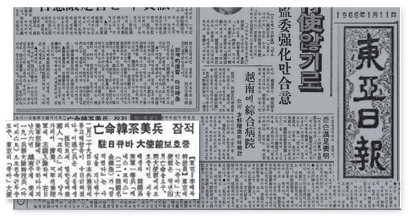 1960년대 베트남 파병을 거부했던 한국인은 공적인 역사에는 존재하지 않는다. 하지만 아래에 소개하는 두 한국인은 베트남전쟁 참전을 거부하고 ‘밀항’과 ‘망명’을 통해 국경을 넘은 사람들이다. 탈영, 망명으로 이어지는 두 사람의 인생 유전의 무대가 된 것은 일본이지만, 이 무대에 한국·베트남·미국·북한·쿠바가 등장한다. 두 사람에 대한 자료는 거의 존재하지 않는다. 한국 신문에는 미군 병사 김진수(金鎭洙)에 대한 단신 기사가 등장할 뿐이다. 일본의 국회 회의록, 운동단체의 기관지나 회고록 등 단편적인 일본 쪽 자료를 통해 두 사람의 인생 유전을 되짚어볼 수밖에 없다.