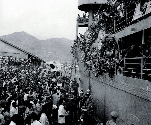1964년 제1차 베트남 파병 때 부산 시민들이 파월 장병을 환송하고 있다. 정부기록사진집