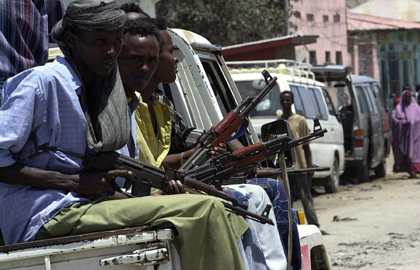 소말리아의 수도 모가디슈에서 총기로 무장한 사설 경호원들. 민음인 제공