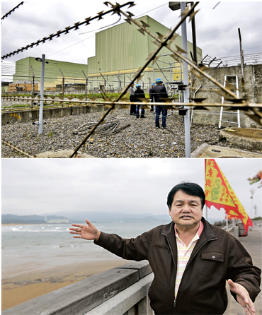 룽먼 4호기 핵발전소의 원자로 건물 옆에서 작업자들이 시설 점검을 벌이고 있다(위). 대만환경보호연맹 궁랴오지부 회장을 맡고 있는 우웬창이 예전 바닷가의 모습을 설명하고 있다.