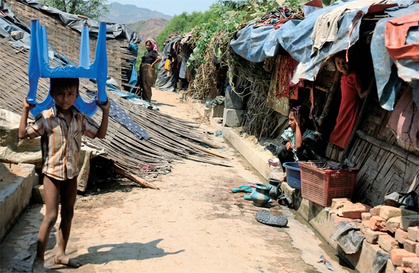 방글라데시 미등록 로힝야 난민캠프. 당국의 비협조로 한 비정부기구(NGO)만이 제한적으로 구호활동을 펴고 있으며, 식량 구호는 전혀 없다. 대부분의 주거지는 대나무와 짚을 엉성하게 엮은 수준으로 매우 촘촘히 붙어 있고 그중 몇몇은 ‘주저앉은’ 모양새다. 그동안 기자가 접해본 수많은 난민캠프 중 가장 열악한 환경이라 해도 과언이 아니다.