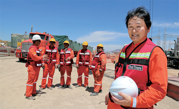 판트란스의 홍금표 사장이 알타미라 항구에서 750km 떨어진 산루이스델라파스의 인터젠 열병합발전소까지 120t짜리 배열회수보일러(HRSG) 3대를 운송하는 작업을 무사히 마친 뒤 환하게 웃고 있다. 박상주