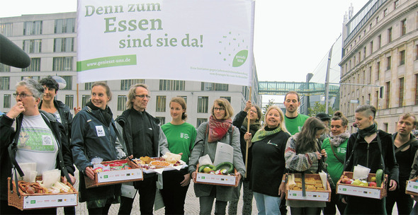 이날 열린 시위는 ‘게니스트운스’(우리를 먹어요)라고 불리는 캠페인의 일환이다. 세계자연보호기금 독일지부, 가난한 사람들에게 음식을 공짜로 나눠주는 단체인 ‘타펠’, 푸드셰어링, 세계기아대책 등 모두 8개의 시민·환경단체가 뜻을 모으고 있다. ‘게니스트운스’는 음식물 낭비 방지 운동을 정치적 방향으로 끌고 나갈 계획이다. 이날도 각 시민단체 대표들은 의회에 “식료품을 낭비하지 않을 법안 제정에 더 힘써줄 것”을 요구했다.