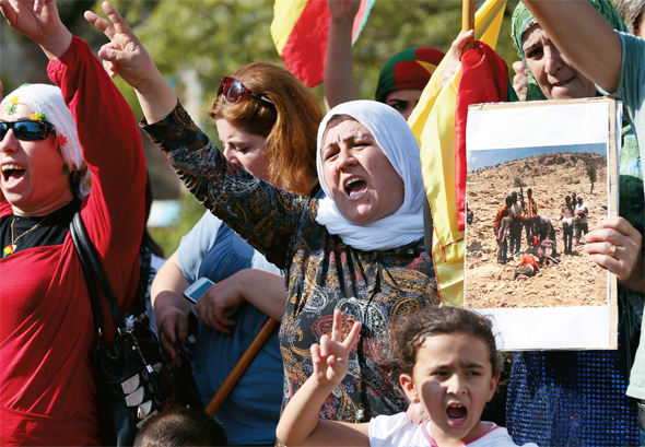 민간인 학살과 납치 등 만행을 저지르는 이슬람국가(IS)는 국제사회의 공공의 적이 되었다. 지난 9월15일 레바논 수도 베이루트의 유엔 청사 앞에서 이라크계 쿠르드족 주민들이 IS의 만행을 규탄하는 시위를 벌이고 있다. AP