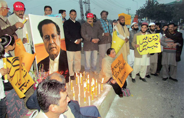 이날 시민들이 추모하려 했던 살만 타시르는 2011년 이슬라마바드의 한 식당에서 자신의 보디가드가 쏜 총탄 29발에 쓰러졌다. 그즈음 죽음을 예측이라도 하듯 타시르는 섬뜩한 트위터를 남겼다. “신성모독(Blasphemy) 문제와 관련해 우익들에게 굴복하라는 압력을 강하게 받고 있다. 거부한다. 비록 내가 이를 거부하는 마지막 사람이 될지언정.”