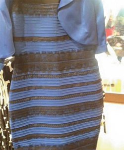 지난주 지구촌은 ‘드레스 색깔 논쟁’으로 소란스러웠다. 많은 이들이 파란색 바탕에 검은 레이스가 달린 옷 사진을 하얀색 바탕에 금색 레이스 옷이라고 인식하면서다(사진). 미국 경제지 <비즈니스 인사이더>는 인간이 태생적부터 파란색을 잘 인식하지 못한다고 문제제기를 했다.