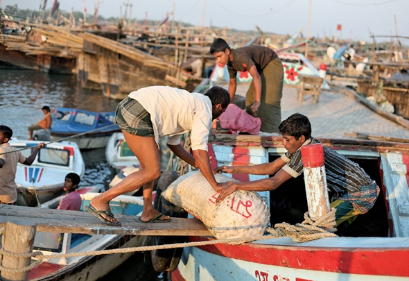방글라데시 콕스 바자르의 한 선착장에서 젊은이들이 일하고 있다. 로힝야 난민이 많이 사는 이 지역의 저임금 시장은 로힝야 난민의 불법노동으로 대거 채워진다. 이유경
