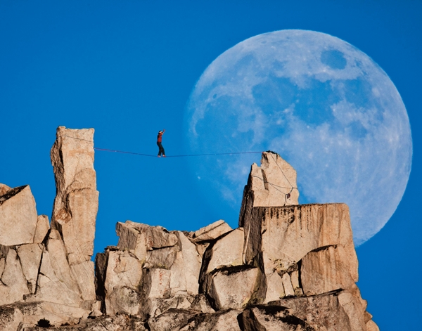 딘 포터가 미국 캘리포니아 요세미티공원에서 절벽 사이 줄타기를 하고 있다. 사진의 제목은 ‘문워크’. deanspotter.com