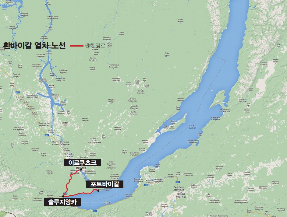 이르쿠츠크는 산에 둘러싸인 도시다. 열차는 계속 산등성이를 타고 달린 끝에 바이칼 순환 노선이 시작되는 슬루지앙카역에 도착했다. 슬루지앙카에서 바이칼호를 끼고 달려 종착역인 포트바이칼까지 달린다. 슬루지앙카역에서는 구 선로로 들어서기 위해 디젤기관차를 연결했다. 구 선로에는 전기 공급을 위한 전차선이 설치돼 있지 않았기 때문이다.