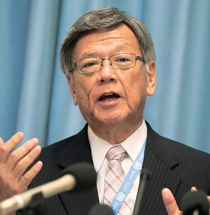 오나가 다케시(翁長雄志) 지사(사진)가 내린 헤노코 매립 승인 취소 결정을 효력 정지했다고 밝혔다.