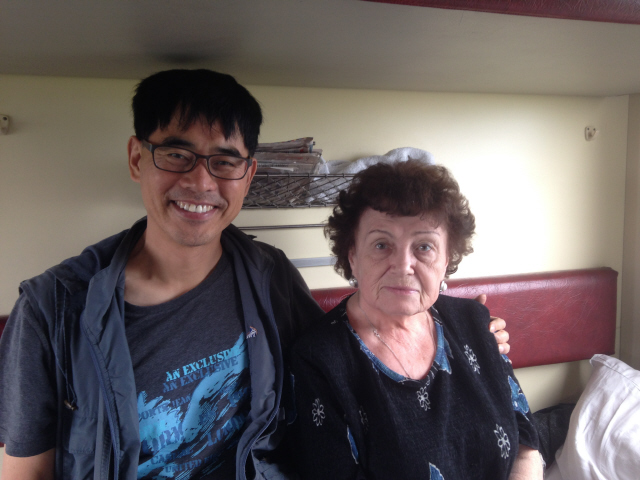 열차에서 만나 우정을 쌓은 알렉셰나 할머니와 기념사진을 찍었다. 할머니는 모스크바 집 주소와 전화번호를 적어주었다. 이번 여행에서 유일하게 얻은 여성의 연락처였다.