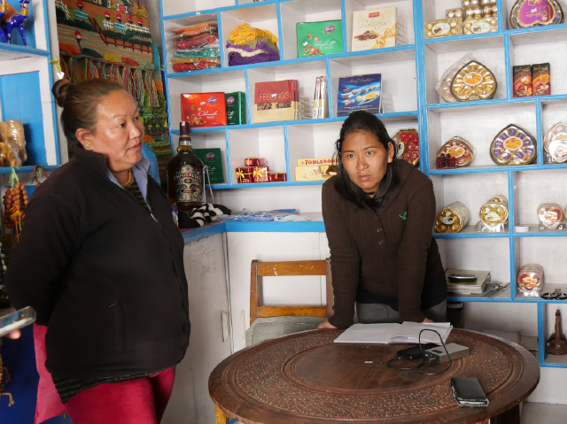 타토파니에서 기념품 가게를 운영하는 라무 셰르파(왼쪽)는 지진과 산사태 이후 손님이 단 한 명도 없었다고 말했다.