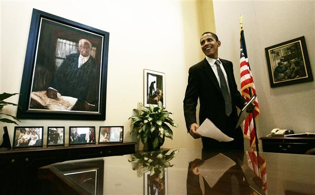상원의원 오바마 집무실 벽에 걸린 얼굴
