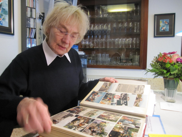장례식 다음날, 힌츠페터의 부인 에델트라우트 브람슈테트가 자택에서 고인의 생전 활동을 이야기하고 있다.