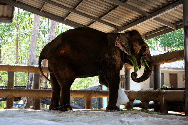 3월 중순, FAE에는 코끼리 5마리가 영구 입원해 있었고, 9마리는 임시 입원 중이었다. 외상후스트레스장애(PTSD)를 앓는 보보도 그중 하나다. 6년 전 머리 상처로 입원했지만 치료 과정에서 PTSD가 발견됐다는 게 의사 크루똥 까이얀의 설명이다. 병원은 신경이 날카로운 보보에게 인간과 거리를 둔 공간에 집을 마련해줬다.