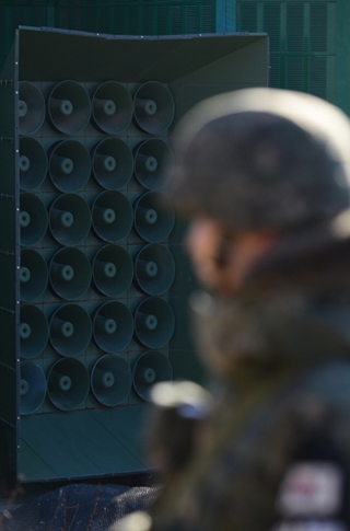 북한의 4차 핵실험에 대응하기 위해 박근혜 정부가 2016년 1월 설치한 대북확성기. 한겨레