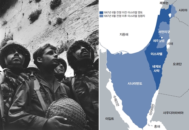 1967년 6월 전쟁은 중동을 여러모로 바꿔놓았다. 6월 전쟁 이후 아랍-이스라엘 분쟁은 강렬한 주목을 받게 됐다. 이집트, 요르단, 시리아 등은 이스라엘에 영토를 뺏겼다. 지리적으로 이스라엘 영토는 대폭 늘었다(상단 지도 참조). 이집트 땅이던 시나이사막과 가자지구, 요르단 땅이던 서안지구와 예루살렘, 시리아 땅이던 골란고원을 이스라엘이 점령하면서 ‘점령지’가 늘었다. 팔레스타인 사람들은 아랍의 패배에 깊이 좌절했다. 팔레스타인 해방에 대한 기대감이 꺾였다. 결국 6월 전쟁 뒤 팔레스타인 해방을 위해 이스라엘에 항거하는 ‘무장투쟁’을 천명하고 실행에 옮길 수밖에 없는 상황이 됐다.