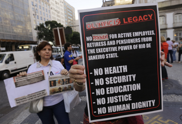 2016 리우데자네이루올림픽 기간에 한 브라질 국민이 예산을 복지와 교육 등에 쓰라고 요구하는 시위를 벌였다. AP 연합뉴스