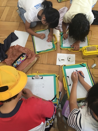 교실로 돌아온 하타케야마는 과학실험용 투명 접시에 잠자리 유충을 크기별로 분류해 담았다. 조별로 접시에 담긴 유충을 받아간 아이들은 돋보기로 관찰을 시작했다. 다리가 몇 개인지, 눈은 어디에 달렸는지 등을 살핀 뒤 제법 그럴싸한 솜씨로 하얀 종이에 유충 그림을 그렸다.