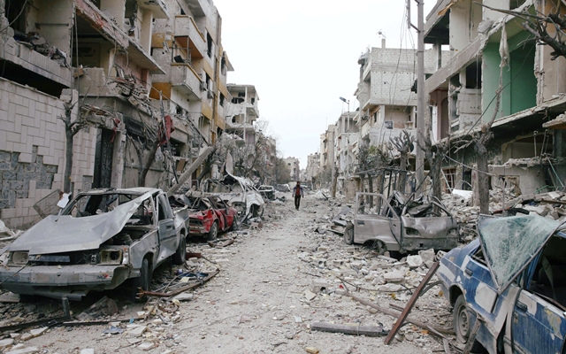 시리아 반군이 장악한 동구타 두마 지역이 정부군의 공습으로 폐허로 변했다. REUTERS 연합뉴스