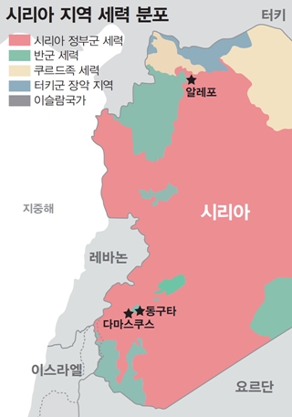 2011년 아랍 지역의 민주화운동인 ‘아랍의 봄’이 시리아에 옮겨붙으며 아사드 정권에 대한 반정부 시위는 내전으로 비화됐다. 사우디아라비아와 걸프 지역 수니파 보수 왕정 국가들이 (시아파 국가인) 아사드 정권을 타도하려고, 반군 세력을 지원했다. 이에 맞서, 아사드 정부는 시아파 세력인 이란과 레바논의 무장조직 헤즈볼라뿐만 아니라 오랜 우방이던 러시아의 지원을 받았다. 그로 인해 내전은 장기화됐고, 시리아는 쑥대밭이 됐다. 이런 혼란 속에 이슬람국가가 급속히 세력을 불려 시리아 서·북부 지역을 장악했다. 그러자 내전은 정부군 대 반군이 대결하는 양자 구도에서 이슬람국가 격퇴 전쟁으로 성격이 변했다. 이슬람국가를 격퇴한 주역은 미국의 지원을 받은 인민수비대(YPG) 등 쿠르드족 민병대 세력이 주축인 시리아민주군(SDF)이었다. 이들이 이슬람국가를 격퇴하며 시리아 쿠르드족은 서·북부에서 세력을 키웠고 터키와 접경한 북동단 지역인 아프린도 장악했다. 그사이 아사드 정부군은 러시아의 강화된 지원을 등에 업고, 남부에서 반군과 이슬람국가 세력을 구축했다. 또 북부에선 2016년 12월 내전 초기부터 반군과 치열한 공방전을 벌이던 최대 도시 알레포를 장악해 반군에 큰 타격을 입혔다. 알레포 공방전으로 1만3500명이 숨지고, 2만3천 명이 다친 것으로 집계된다. 알레포 공방전의 결론은 시리아 내전 구도가 크게 출렁이는 변곡점이 되었다. 지난해 하반기 들어 시리아 내전은 이슬람국가가 본격적으로 패퇴하고, 남부에서는 정부군, 북부에서는 쿠르드족이 약진하는 양상으로 바뀌었다. 그러자 (자국 내 분리독립 세력인) 쿠르드족의 세력 확장을 견제하던 터키는 새해 들어 군사개입을 단행했다. 시리아 쿠르드족이 힘을 키워 터키 내 쿠르드족의 분리독립 운동에 영향 주는 것을 차단하기 위해서였다. 중동 강국들의 국제전 그와 동시에 시라아의 ‘숙적’ 이스라엘의 움직임도 분주해졌다. 국경지대인 남부에서 아사드 정부의 장악력이 다시 커지자, 이스라엘은 2월10일 시리아 정부군 시설을 공습했다. 이런 흐름에서 발생한 동구타 사태는 시리아 내전이 본격적인 국제전으로 비화하는 중요 변곡점이 될 전망이다. 터키는 이미 시리아 내전에 발을 담갔고, 이스라엘은 동구타 함락으로 남부에서 아사드 정부군의 장악력이 굳어지는 것을 좌시하지 않겠다는 태세다. 터키에 이어 이스라엘까지 개입한다면, 시리아 내전은 중동 강국들이 모두 참여하는 본격적인 국제전이 된다. 지난해 말부터 승기를 잡아가는 아사드 진영은 지중해 연안에서 다마스쿠스를 연결하는 ‘유스풀 시리아’(Useful Syria) 지대를 완성하려 한다. 시리아를 수니파 지역, 쿠르드 지역, 아사드 정권 지역으로 나누려는 전략이다. 지중해 연안부터 동남쪽 다마스쿠스까지가 ‘유스풀 시리아’다. 이 지역은 아사드 정권의 중추를 구성하는 (시아파의 분파인) 알라위파 등 소수 종파와 민족으로 구성된 아사드 지지 세력의 영향이 강한 곳이다. ‘유스풀 시리아’의 구축은 중동에서 최대 숙적 관계인 이란과 이스라엘의 전략적 입지를 바꾸게 된다. 이란은 시리아에서 세력을 구축할 수 있을 뿐 아니라 지중해로 나아가는 통로를 확보하게 된다. 반면 이스라엘은 접경한 시리아에서 이란과 헤즈볼라 세력에 직면해야 하는 안보 위협을 받게 된다. 이란은 이스라엘뿐 아니라 사우디아라비아에도 최대 적이다. 사우디아라비아는 자신이 지원하던 반군 세력이 약화된 상황에 있다. 이것은 시리아에서 이란과 이스라엘이 대결할 환경을 만들고 있다. 그 때문인지 사우디아라비아는 최근 부쩍 이스라엘과 관계를 개선하고 있다. 사우디아라비아는 아사드 정권을 압박하는 이스라엘과 터키의 개입에 협조할 것이다. 중동의 ‘30년 전쟁’으로 치닫나 도널드 트럼프 행정부는 전임 버락 오바마 행정부가 취했던 이란과 화해 정책을 폐기하고, 이란을 적대하는 사우디아라비아 등 수니파 아랍국가들과의 동맹을 강화했다. 이런 중동 정세는 아사드 정권에 대한 이스라엘의 ‘위협’이 ‘행동’으로 바뀔 수 있는 조건이다. 이스라엘이 시리아 내전에 개입해 이란에 대한 직간접 군사행동을 벌여도, 미국과 수니파 아랍국가들은 방조할 것이다. 시리아 내전은 터키·이스라엘·이란·사우디아라비아 등 중동의 강자들이 직접 개입하고, 러시아와 미국이 그 뒤를 받치는 중동의 ‘30년 전쟁’으로 달려가고 있다. 정의길 <한겨레> 국제부 선임기자·<이슬람 전사의 탄생> 저자