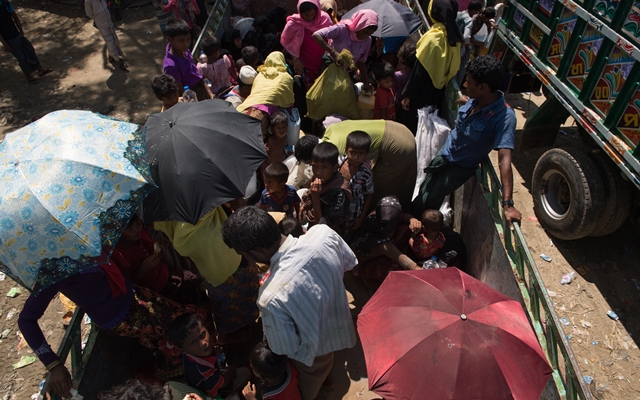 2017년 8월 미얀마 툴라톨리 학살이 있은 뒤 로힝야 사람들은 방글라데시로 탈출을 시도했다. 전날 몰래 배를 타고 방글라데시로 넘어온 사람들이 2017년 10월 13일 쿠투팔롱 난민촌으로 향하는 트럭에 올라탔다.
