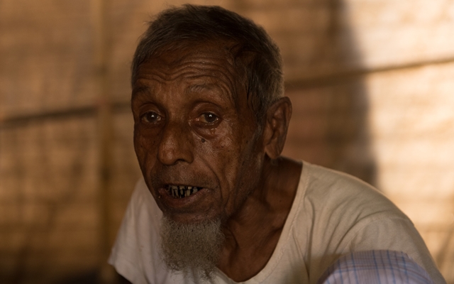 한국의 시민단체 아시아인권평화디딤돌 ‘아디’는 방글라데시 로힝야 난민캠프에서 학살 생존자들에게 피해에 대한 기초조사와 면접조사를 했다. 이야기하며 눈물 흘리는 로힝야 할아버지.