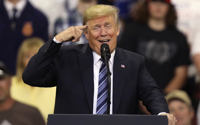 ’김정은 위원장이 내 임기 안에 비핵화를 원한다고 말했다.’ 도널드 트럼프 미국 대통령이 9월6일 몬태나주 빌링스에서 열린 선거 유세에서 연설하고 있다. 연합뉴스