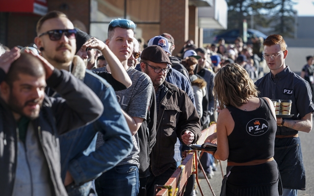 이른바 ‘여가용 마리화나’ 흡연이 합법화한 첫날인 10월17일 캐나다 앨버타주 캘거리의 판매점 앞에 구매자들이 길게 줄을 서 있다. 연합뉴스