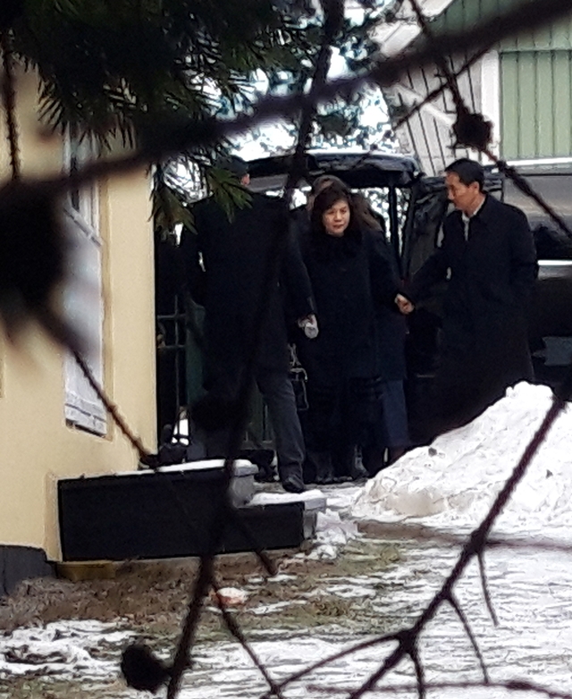 1월21일 스웨덴 스톡홀름에서 열린 남북-미 실무회담을 마친 최선희 북한 외무성 부상 일행이 현지 북한 대사관에 들어서고 있다. 연합뉴스
